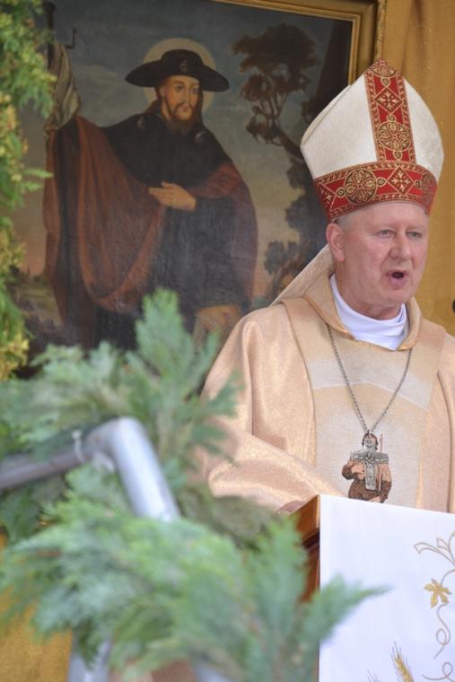 Kaznodzieja zaakcentował, że kroczenie drogą ośmiu błogosławieństw przybliża nas do Boga. Taka była droga życiowa św. Rocha, który z odwagą, służył wszystkim potrzebujący pomocy, a przez czyniony na czole znak krzyż wielu uzdrowił. Był tym, który nie tylko troszczył się o ludzi, ale i o zwierzęta, stąd jego patronat nad zwierzętami. Kaznodzieja przypomniał, że Kardynał Józef Glemp ustanowił św. Rocha patronem polskich lekarzy weterynarii. W dalszej części homilii ksiądz biskup wskazywał na moc błogosławieństwa. Powiedział: „ Błogosławić kogoś, to powierzać go Bogu, Bożej opiece, życzyć mu dobra, szczęścia. Zaś przeklinać kogoś, to życzyć mu zła”. Kaznodzieje podkreślił, że błogosławieństwo jest udzielane i w mikstackim sanktuarium. Kontynuując zawiązał do odbywającego się w Mikstacie obrzędu błogosławieństwa. Celebrans zwrócił uwagę, że Biblii zwierzęta wykorzystywane są w zbawczej dydaktyce. Przywołał fragment wiersza ks. Jana Twardowskiego mówiący o tym, że Bóg stworzył psa po to, aby uczył człowieka wierności. Ponadto kaznodzieja zwrócił uwagę, że Katechizm Kościoła Katolickiego wskazuje, że człowiek może wykorzystywać zwierzęta, tylko wtedy, gdy jest to niezbędne dla jego życia. W dalszej części homilii ks. biskup zwrócił uwagę na występując coraz częściej zjawisko humanizacji zwierząt i dehumanizacji człowieka. Przejawia się on w hasłach „ Pies to też człowiek” albo „Koń to też człowiek”. Takie humanizowanie zwierząt jest dehumanizowaniem człowieka. Bo skoro zwierzę równa się z człowiekiem, to człowieka się poniża – dodał celebrans. Kończąc homilię ksiądz biskup powiedział: „Tylko posłuszeństwo Bożym prawom może zapewnić w świecie ład i porządek, a droga ośmiu błogosławieństw przybliża świat i nasze życie do Bożego królestwa. Doskonale rozumiał to i praktykował św. Roch. Z całego serca życzę wszystkim, abyśmy to jego piękne świadectwo przenosili do codziennego życia”. Amen. Wiele cennych wskazań zostało zawartych w słowach skierowanych do wiernych zebranych przy sanktuarium. W świat popłynęło przesłanie o właściwym traktowaniu zwierząt, o właściwych relacjach między człowiekiem a zwierzęciem. Były także słowa zachęcające do naśladowania naszego Patrona w życiu codziennym. Ksiądz biskup zachęcał, by rodzice często błogosławili swoje dzieci. Błogosławcie, a nie przeklinajcie, nie złorzeczcie to przesłanie wynikające z przeżywanego odpustu ku czci apelował ksiądz biskup.