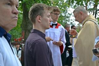 Na początku Eucharystii ks. kan. Krzysztof Ordziniak, kustosz Diecezjalnego Sanktuarium Świętego Rocha w Mikstacie skierował słowa podziękowania za przybycie na uroczystości odpustowe do ks. biskupa Wiesława Szlachetki. Wyraził radość z obecności ks. biskupa wśród nas. Ksiądz kustosz przywitał kapłanów, przedstawicieli władz, pielgrzymów, parafian. Wcześniej, o godz. 9:00 ks. biskup przewodniczył obrzędowi błogosławieństwa zwierząt.