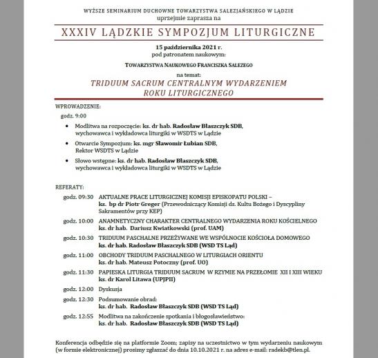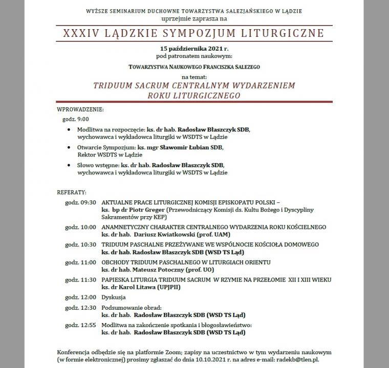Wyższe Seminarium Duchowne Towarzystwa Salezjańskiego zaprasza dnia 15 października br. na coroczne sympozjum liturgiczne.