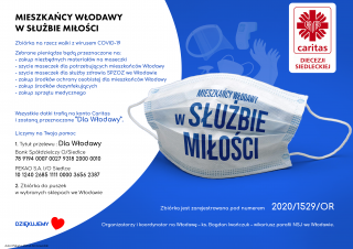 Szpital we Włodawie oraz potrzebujący mieszkańcy tego miasta i okolic będą mogli liczyć na wsparcie w walce z koronawirusem. Caritas Diecezji Siedleckiej rozpoczyna zbiórkę pieniędzy na zakup sprzętu medycznego, płynów do dezynfekcji, środków ochrony osobistej, w tym maseczek i materiałów potrzebnych do szycia kolejnych.