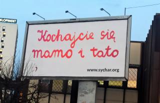Plakaty z hasłem „Kochajcie się mamo i tato” znalazły się na medialnym celowniku