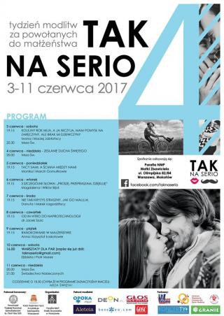 W dniach 3-11 czerwca, w parafii NMP Matki Zbawiciela w Warszawie trwa IV Tydzień Modlitw za Powołanych do Małżeństwa pod hasłem „TAK na serio!”.