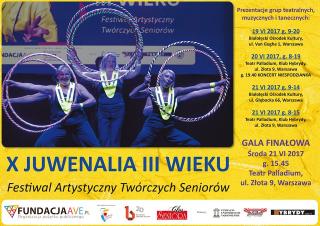 W Warszawie trwają 10. Juwenalia III Wieku, organizowane przez Fundację AVE. Przez trzy dni na warszawskich scenach – Białołęckiego Ośrodka Kultury, Teatru Palladium i Klubu Hybrydy wystąpi ponad 3,5 tys. seniorów z Uniwersytetów III Wieku z całej Polski.