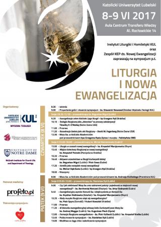 W dniach 8-9 czerwca 2017 na Katolickim Uniwersytecie Lubelskim Jana Pawła II w Auli Centrum Transferu Wiedzy przy Alejach Racławickich 14 w Lublinie odbędzie się sympozjum pt. „Liturgia i nowa ewangelizacja”.