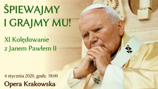 IDMJP2 w Krakowie zaprasza 4 stycznia 2020 r. o godz. 18:00 do Opery Krakowskiej na uroczystą inaugurację obchodów 100. rocznicy urodzin Karola Wojtyły - Jana Pawła II podczas koncertu "Śpiewajmy i Grajmy Mu! XI kolędowanie z Janem Pawłem II: Tre Voci i Sopranissimo".