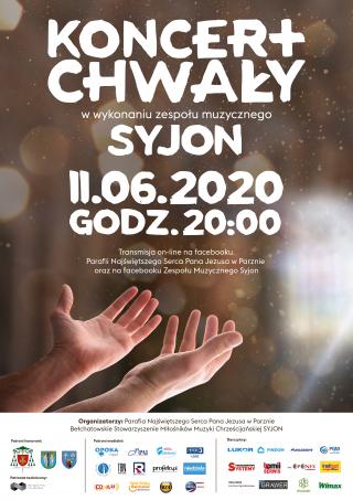 11 czerwca o godzinie 20.00 w PGE Giganty Mocy w Bełchatowie odbędzie się Koncert Chwały transmitowany on-line przez Internet. W uroczystość Bożego Ciała - święto upamiętniające obecność Jezusa w Eucharystii - Zespół Syjon oraz inni artyści uwielbią Pana. Dzięki transmisji dołączyć do nich może każdy.