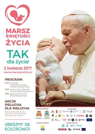 2 kwietnia (w niedzielę) w Warszawie odbędzie XII Marsz Świętości Życia.