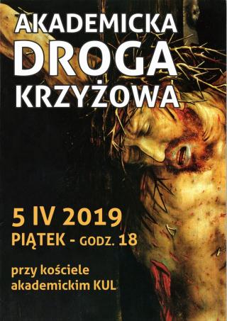 Tradycyjnie w Wielkim Poście, duszpasterstwo akademickie KUL zaprasza wszystkich studentów, pracowników naukowych i mieszkańców Lublina na Akademicką Drogę Krzyżową, która odbędzie się w najbliższy piątek 5 kwietnia 2019 r.