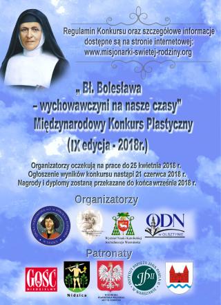 Do 25 kwietnia Uczniowie i Nauczyciele oraz zainteresowane Osoby z różnych zakątków całego świata mogą zgłaszać swoje prace do Międzynarodowego Konkursu Plastycznego Bł. Bolesława - wychowawczyni na nasze czasy.