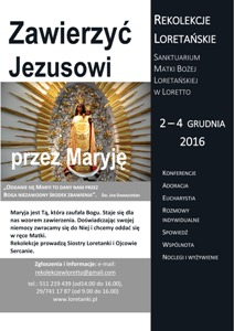 W dniach 2-4 grudnia 2016 w Sanktuarium Matki Bożej Loretańskiej w Loretto koło Wyszkowa odbędą się rekolekcje prowadzone przez Siostry Loretanki i Ojców Sercanów.