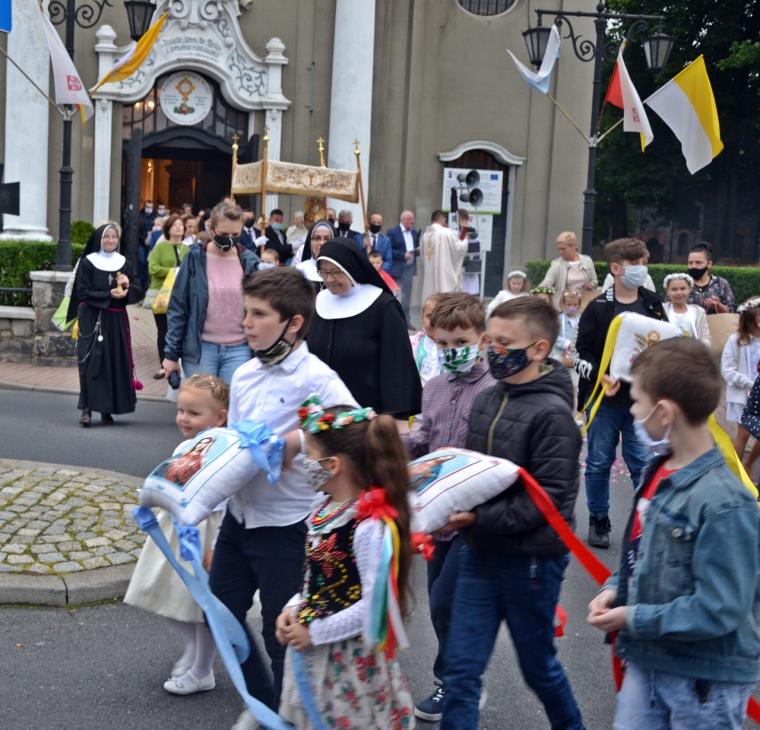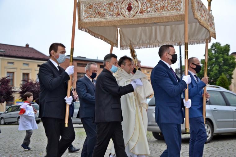 Po odnowieniu aktu poświęcenia się miasta Najświętszemu Sercu Pana Jezusa ks. kan. Krzysztof Ordziniak  udzielił błogosławieństwa Najświętszym Sakramentem na cztery strony świata i procesja powróciła do kościoła. Tu odśpiewana została pieśń „Najświętsze Serce Boże, poświęcamy Ci...”.
