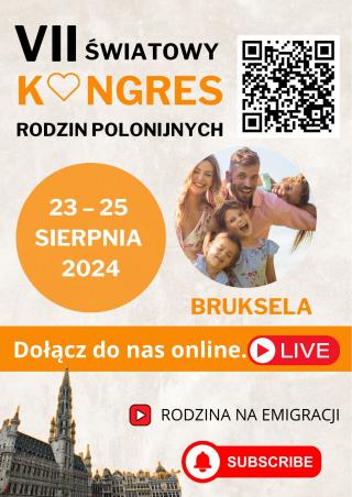 W dniach od 23 – 25 sierpnia 2024 roku odbędzie się w Brukseli VII Światowy Kongres Rodzin Polonijnych zatytułowany: „Rodzina polonijna – miejscem spotkania i rozwoju”. W czasie Kongresu zostaną podjęte zagadnienia związane z budowaniem i umacnianiem dojrzałych relacji małżeńskich i rodzinnych, komunikacji i rozwiązywania konfliktów, reemigracji oraz tematy dotyczące wychowania i wspierania rozwoju dzieci i młodzieży