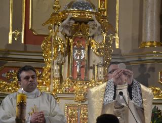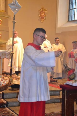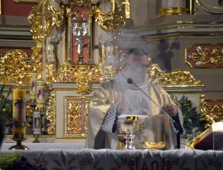 Homilię podczas Mszy Wieczerzy Pańskiej wygłosił ks. Marcin, który na początku ukazał jak wyglądały przygotowanie do tradycyjnej paschy żydowskiej. Zwrócił uwagę na szczególna troskę o baranka, którego następnie zabijano, bo potrzebna była krew do dopełnienia obrzędu paschy. Nawiązując do Ewangelii zwrócił uwagę, że Jezus spożył wieczerzą z uczniami przed paschą. Podkreślił, że Jezus swoją paschę odbędzie w Wielki Piątek. Kontynuując kaznodzieja zapytał: „ Czym zatem jest to co Jezus uczynił uczniom podczas wieczerzy”? Odpowiadając nawiązał do pierwszego cudu w Kanie Galilejskiej, gdzie puste stągwie, które Jezus kazał napełnić wodą, które zamienił w wino. Woda, tym razem w miednicy, pojawiła się i odgrywa ważną rolę podczas wieczerzy. Kapłan powiedział: „Skoro Jezus spożywa wieczerzę, którą wyprzedza Jego paschę i zamyka w znak, to co my czynimy po dzisiejszy dzień w Eucharystię tzn. że jest to tą sama woda, która zalała grzech Egiptu, kiedy Izraelici uciekali przez suche Morze Czerwone i to ta sama woda, którą Jezus zamienił w wino w Kanie Galilejskiej, to ta sama woda, i to też ta sama woda, która wypłynie z boku Jezusa, gdy Go zabijemy”. Kontynuując ks. Marcin wyjaśnił znaczenie gestu obmycia nóg. Zwracając uwagą na opór Szymona zaakcentował, że to ważny moment dla każdego z nas. Wymaga przyznania się do tego, że potrzebujemy obmycia. Dodał, że jest jeszcze jedna woda, woda Chrztu świętego, która zmywa nas z grzechu. Jednak nadal grzech jest w nas. Dopiero obmycie przez Chrystusa , którym jest Jego śmierć, uwalnia nas od grzechu. Kapłan zaapelował do zebranych: „ Pozwólcie dzisiaj obmyć wasze serca wodą, która stanie się Krwią Chrystusa przelaną za nas na krzyżu. Jezus dzisiaj wino z Kany Galilejskiej przemienił w swoją krew, ale to od naszego serca zależy za kim pójdziemy”. Kontynuując ks. Marcin podkreślił, że to od nas zależy za kim pójdziemy. Podkreślił, że jeśli pozwolimy, by nad naszymi sercami zapanował zły duch, to w naszym życiu nie będzie miejsca na gest obmycia nóg, oczyszczenia i przemianę naszych serc. Kapłan zachęcał zebranych, by zastanowili się co w naszym życiu wymaga przemiany, obmycia w krwi Chrystusa. Kończąc kaznodzieja powiedział: „Niech ta woda, która za chwilę popłynie na nowo oczyści nasze serca, by nie gościł tam strach, przed chęcią zmiany, by nie gościła tam niepewność, czy z Bogiem uda nam się naprawić nasze życie, ale by ta woda, która jest krwią Boga zmyła z nas to co zostawia w nas zły duch, byśmy mogli w końcu wrócić do Boga czystymi stopami naszych serc. Amen”.