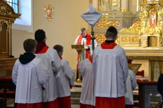 O godz. 15:00 do kościoła przybyli czciciele Bożego Miłosierdzia z naszej parafii. Zgodnie z życzeniem jakie wyraził Pan Jezus w słowach skierowanych do św. Faustyny rozpoczęliśmy nowennę do Miłosierdzia Bożego. Modlitwie przewodniczył ks. kan. Krzysztof Ordziniak.
