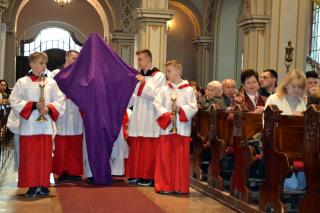 Usłyszane podczas tej liturgii słowa zapewne zachęciły nas do refleksji nad miejscem krzyża w życiu i dodały sił do zmagania się z naszymi krzyżami. Zapewne każdy z obecnych w kościele chce być godnym Chrystusa. Po modlitwie powszechnej nastąpiło uroczyste wprowadzenie i odsłonięcie krzyża oraz jego adoracja. Najpierw uczcili krzyż kapłani, siostry zakonne, ministranci. Po zakończonej liturgii przez całą noc i kolejny dzień taką okazję będą mieli wszyscy wierni. Dodajmy, że krzyż ten niedawno powrócił do kościoła po przeprowadzonych pracach renowacyjnych. Prezentuje się teraz pięknie.