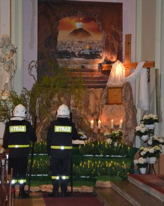 Po zakończonej liturgii Najświętszy Sakrament został przeniesiony do kaplicy Grobu Pańskiego, gdzie będzie trwała całonocna adoracja. Zgodnie z wieloletnią tradycją wartę przy Grobie Pańskim zaciągnęli druhowie OSP z Komorowa. Ich powołaniem jest służba Bogu i ludziom. W tę noc będą czuwali przy Jezusie złożonym w Grobie Pańskim. Zapewne wiele osób nawiedzi w tę noc kościół, by zatrzymać się na chwilę modlitwy przy Grobie Pańskim oraz uczcić krzyż.