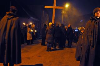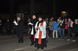 Oświetlona lampkami trasa drogi krzyżowej sprzyjała refleksji, modlitewnej zadumie, czuwaniu i podążaniu za krzyżem Jezusa.