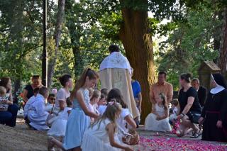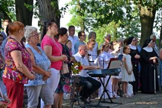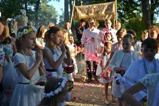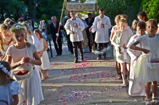 Po Mszy Świętej odbyło się wystawienie Najświętszego Sakramentu, odmówiliśmy Litanię do Serca Jezusowego. Następnie z Jezusem ukrytym pod postacią Chleba wyruszyliśmy alejkami cmentarnymi w procesji do czterech ołtarzu. Myślą przewodnią haseł, która znalazły się w tym roku na przygotowanych przez poszczególne rejony parafii była NIEDZIELA. Hasła skłaniały wiernych do spojrzenia na niedzielę w następujących aspektach: Niedziela dniem Kościoła, Niedziela dniem rodziny, Niedziela dniem wiary, Niedziela dniem człowieka. Procesję zakończyło błogosławieństwo Najświętszym Sakramentem na cztery strony świata. Następnie odbyło się poświęcenie wianków z ziół i kwiatów. To wyraz naszej wiary i zaufania Bogu. Przyniesione zostały pierwociny pól i łąk, by Bóg nam błogosławił, by nikomu nie zabrakło chleba powszedniego, bo tego będącego pokarmem dającym życie wieczne nigdy nie zabraknie… Obyśmy tylko chcieli się nim karmić… Zadziwiająca jest siła wiary i tradycji w naszej wspólnocie.